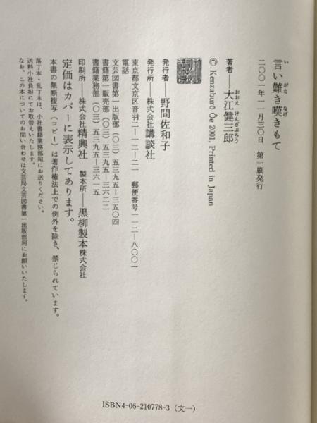 言い難き嘆きもて 講談社 大江 健三郎