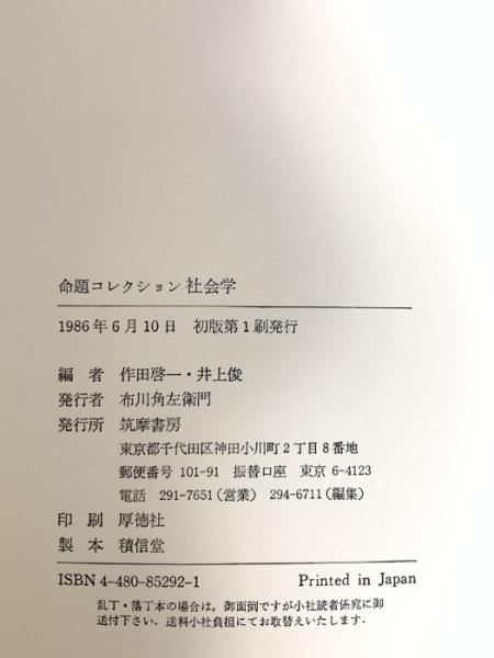 命題コレクション社会学 筑摩書房 作田 啓一