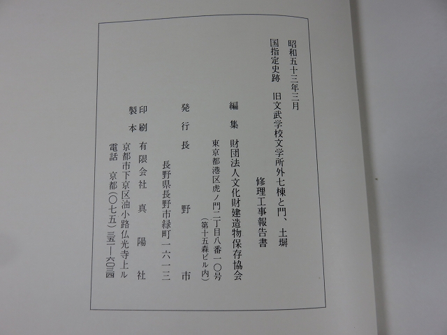 国指定史跡 旧文武学校文学所外七棟と門、土塀修理工事報告書