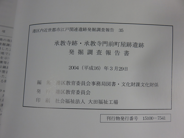 承教寺跡・承教寺門前町屋跡遺跡 発掘調査報告書 2004