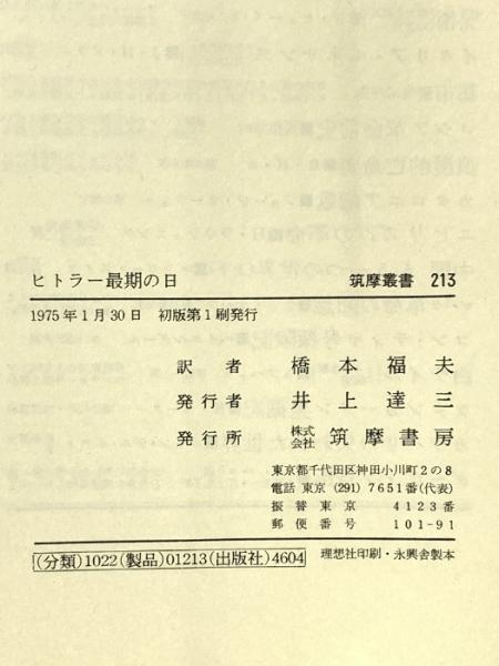 ヒトラー最期の日 (筑摩叢書) 筑摩書房 橋本福夫