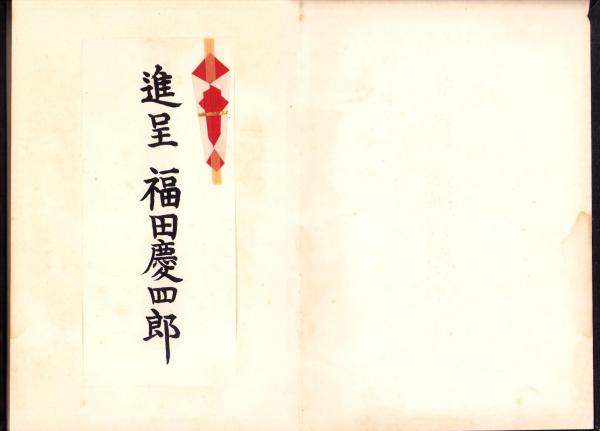 • 解説 写真4頁、本文242頁、非売品、前部見返しに「進呈 福田慶四郎」の印刷紙片貼付、裸本