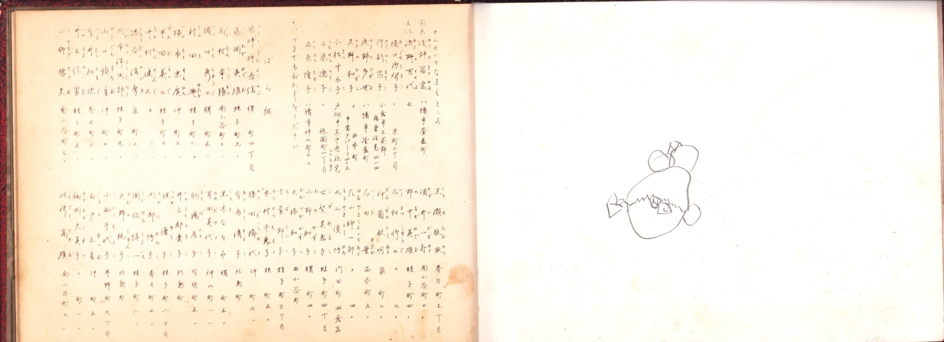 • 解説 A5判、横本、写真9頁、写真貼付頁1頁、住所録3頁、写真裏など白紙5枚に鉛筆で落書