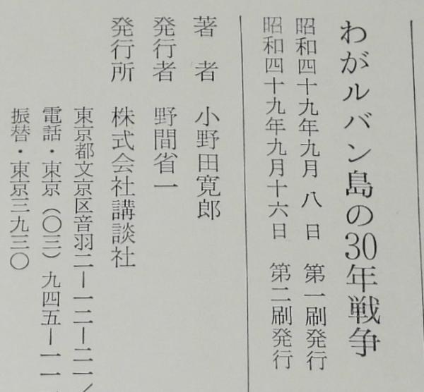 • 解説 小野田寛郎 わがルバン島の30年戦争 講談社 昭和49年9月第2刷 四六判ハードカバー.