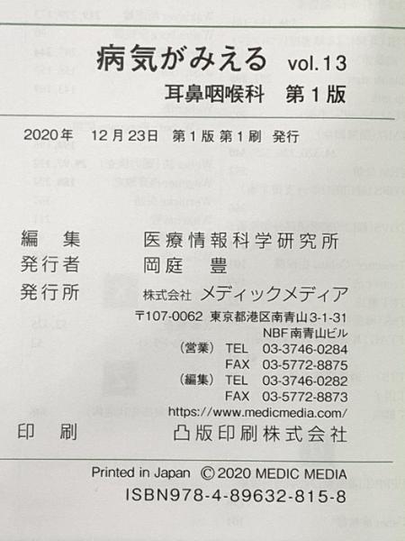 (13) 病気がみえる vol.13 耳鼻咽喉科 第1版 メディックメディア 医療情報科学研究所