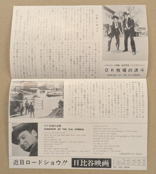 O.K牧場の決斗 映画チラシ 日比谷映画  リバイバル版 二つ折り
