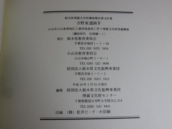 寺野東遺跡4 小山市小山東部工業地造成に伴う埋蔵文化財発掘調査 (縄紋時代 谷部編-1)(縄紋時代 谷部編-2)