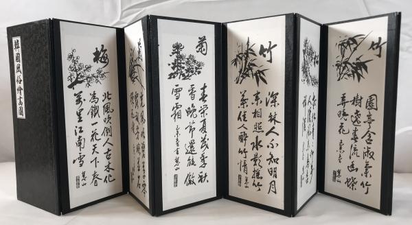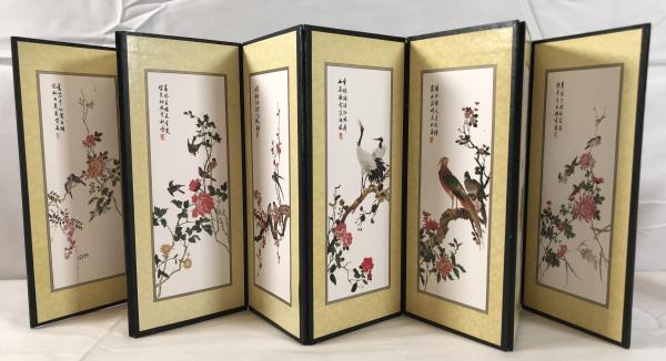 ミニチュア屏風「韓国風俗絵画図」 花鳥図/四君子 両面 卓上屏風 高さ24cm 専用箱付 吉祥画 インテリア