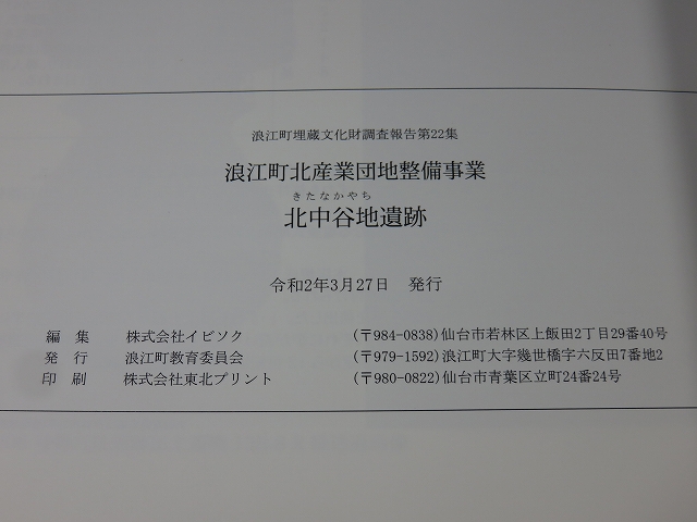 北中谷地遺跡 浪江町埋蔵文化財調査報告 第22冊