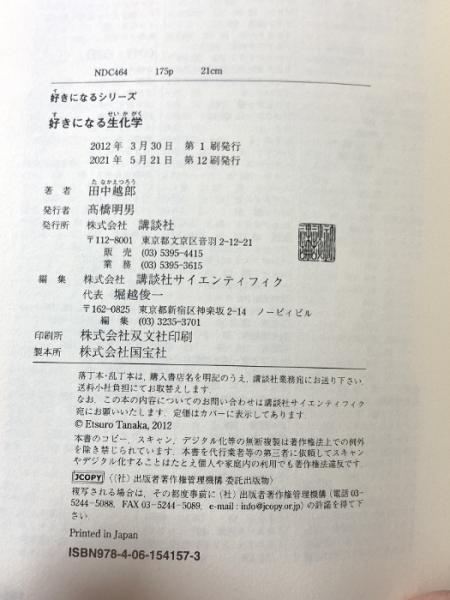 好きになる生化学 (好きになるシリーズ) 講談社 田中 越郎