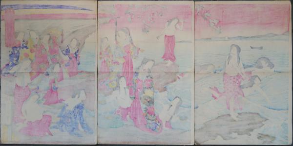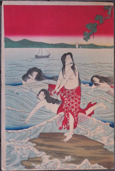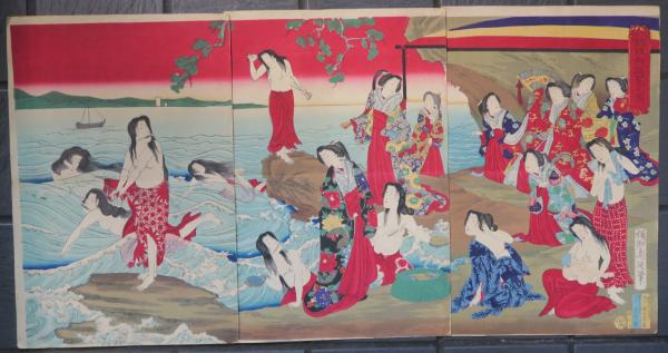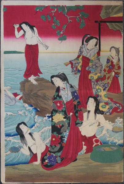 鮑取御遊覧之圖  浮世絵 錦絵 版画