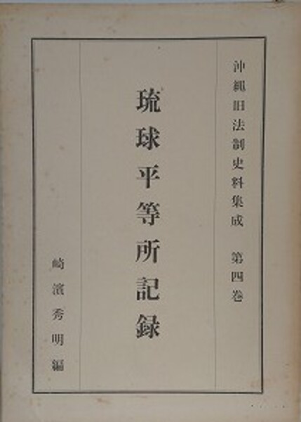 沖縄旧法制史料集成 第4巻 琉球平等所記録