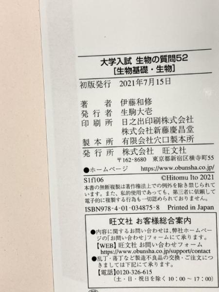 大学入試 生物の質問52[生物基礎・生物] 旺文社 伊藤和修