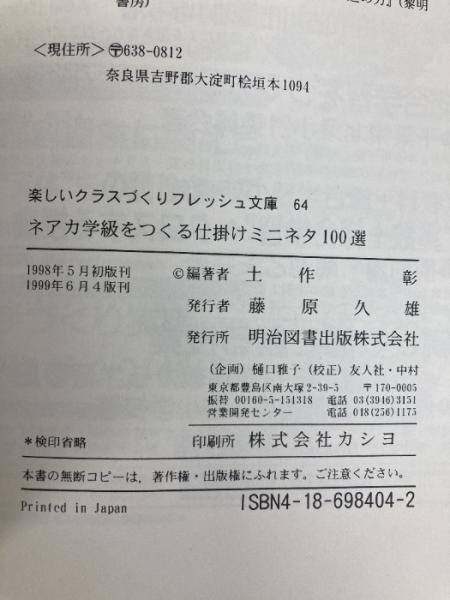 ネアカ学級をつくる仕掛けミニネタ100選 (楽しいクラスづくりフレッシュ文庫 64) 明治図書出版 土作 彰