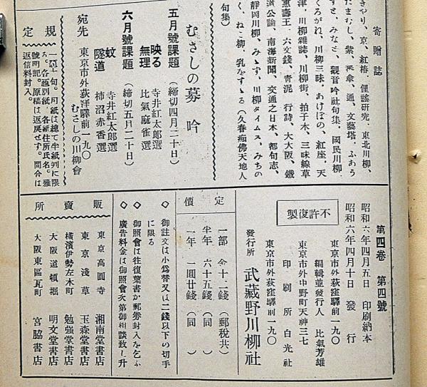 川柳むさしの 第4巻4号(昭和6年4月)