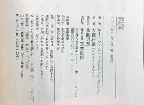 青色本 (ちくま学芸文庫 ウ 15-2) 筑摩書房 ルートウィヒ・ウィトゲンシュタイン