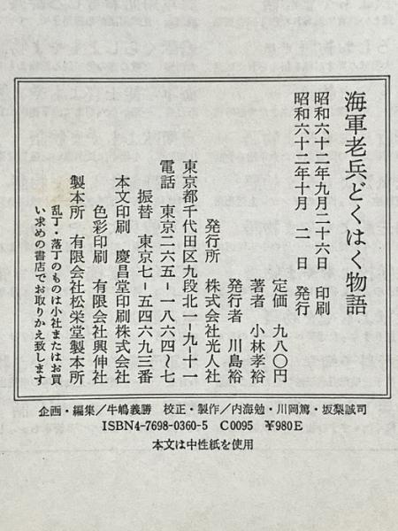 海軍老兵どくはく物語 潮書房光人新社 小林 孝裕