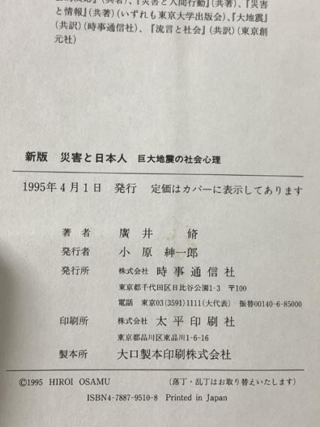 災害と日本人: 巨大地震の社会心理 時事通信社 広井 脩