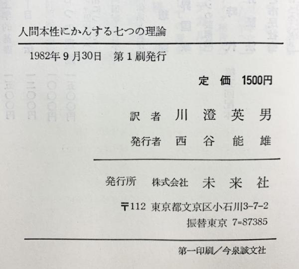 人間本性にかんする七つの理論 (フィロソフィア双書 4) 未来社 L.スティーヴンスン