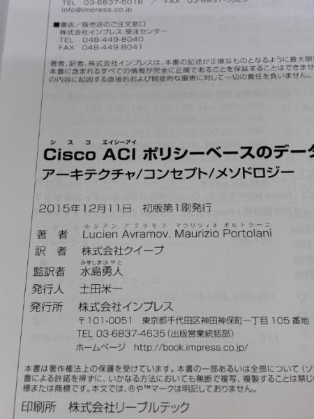 Cisco ACI ポリシーベースのデータセンター アーキテクチャ/コンセプト/メソドロジー インプレス Lucien Avramov