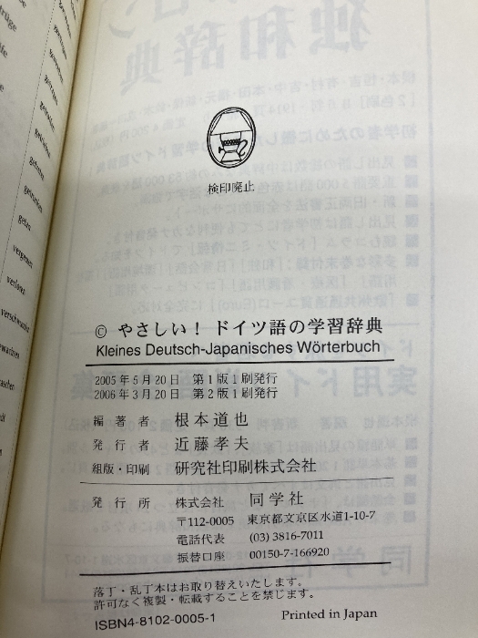 やさしい!ドイツ語の学習辞典 同学社 根本 道也