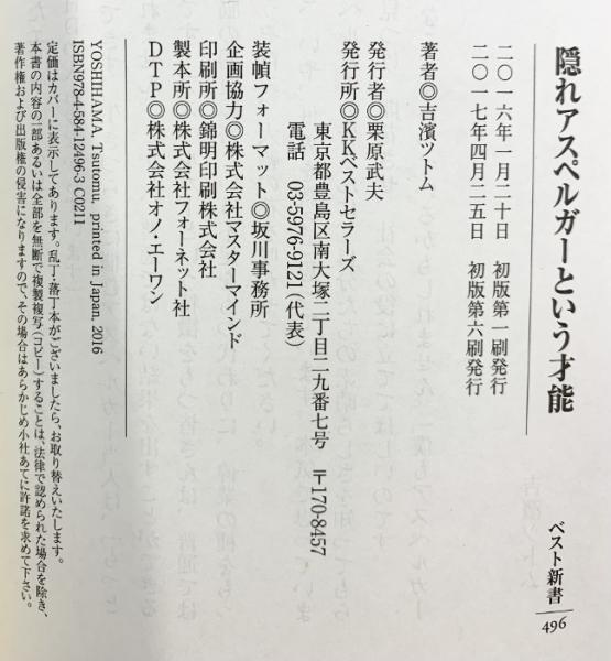 隠れアスペルガーという才能 (ベスト新書) ベストセラーズ 吉濱 ツトム