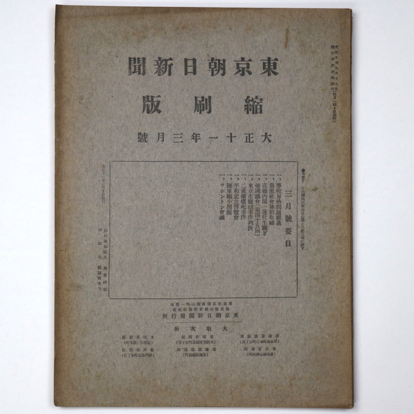 東京朝日新聞縮刷版 大正11年3月号 第33号