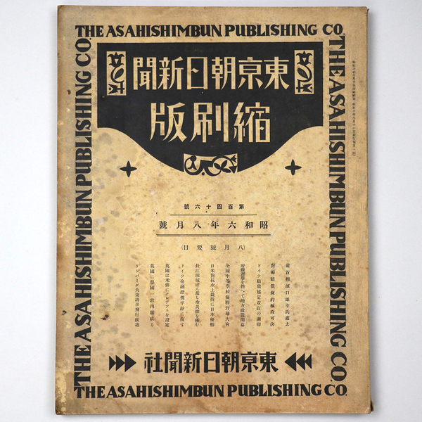 東京朝日新聞縮刷版 昭和6年8月号 146号
