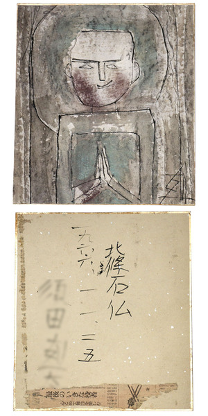 須田剋太「北條石仏」色紙