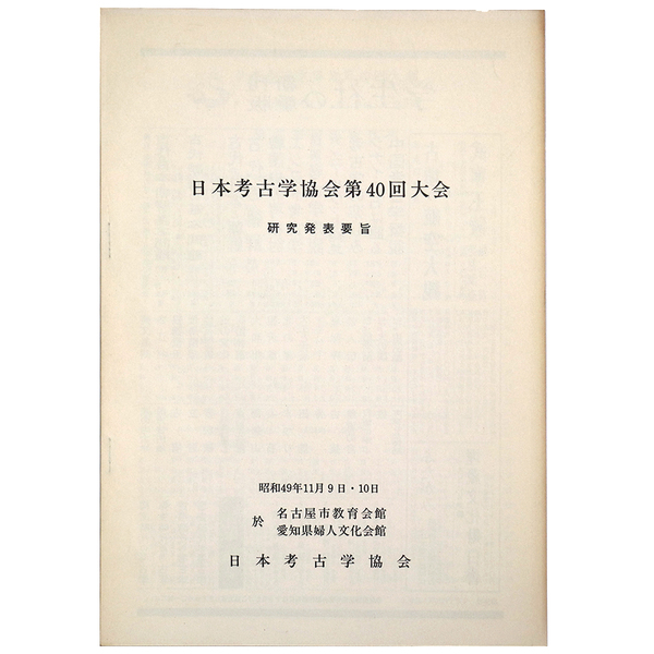 日本考古学協会第40回大会 研究発表要旨 昭和49年11月9日 10日 於 名古屋市教育会館 愛知県婦人文化会館