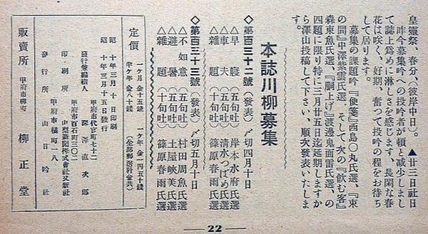 川柳誌 さんにち 第123号~131号・8冊(124号欠) 甲府市柳正堂発行