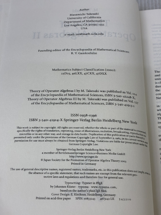 Theory of Operator Algebras II (Encyclopaedia of Mathematical Sciences, 125) Springer Takesaki, Masamichi