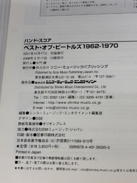 バンドスコア ベスト・オブ・ビートルズ 1962-1970 (バンド・スコア) シンコーミュージック