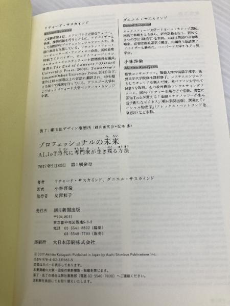 プロフェッショナルの未来 AI、IoT時代に専門家が生き残る方法 朝日新聞出版 リチャード・ダニエルサスカインド