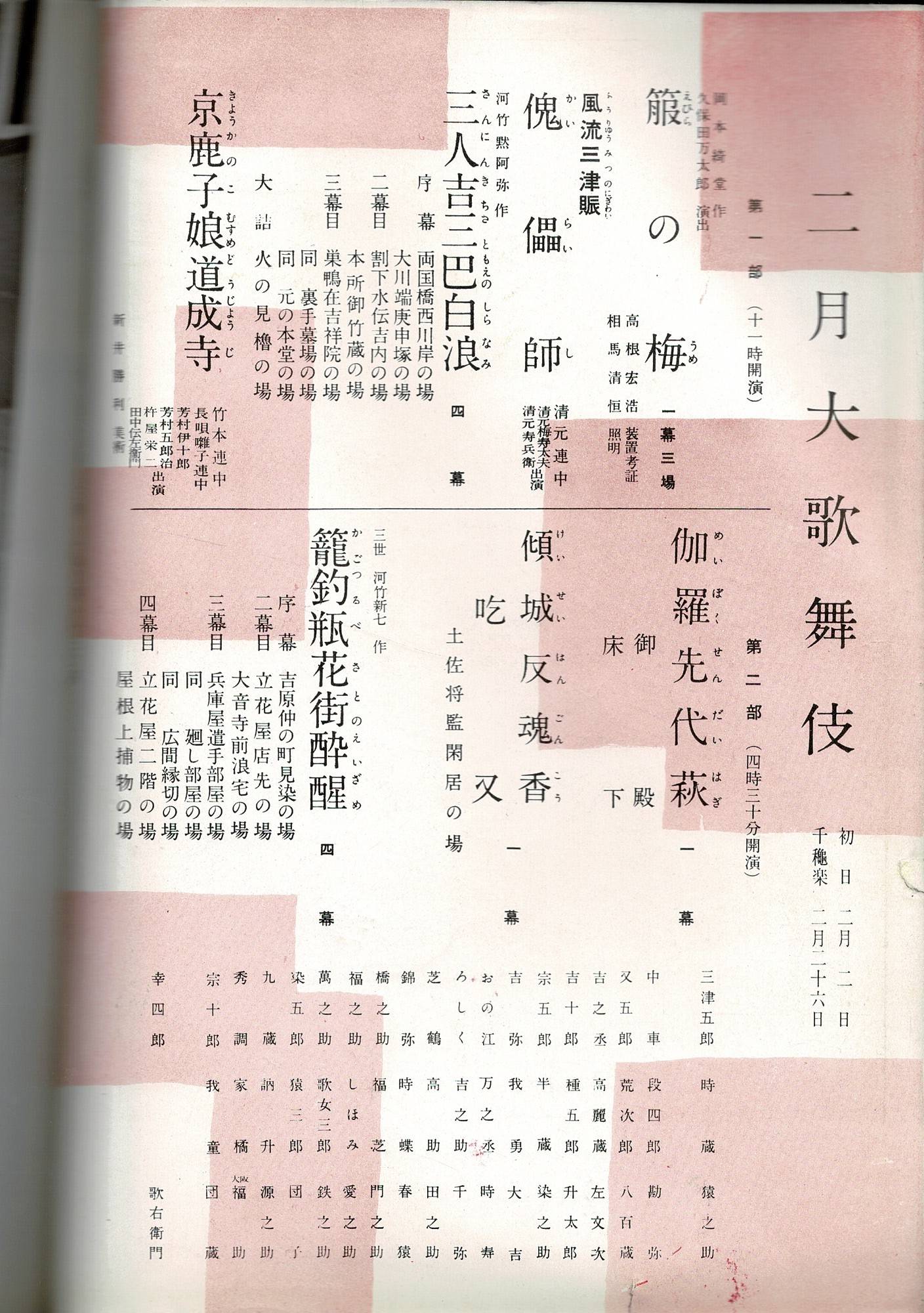 (歌舞伎座 昭和31年)二月大歌舞伎パンフレット 2月・3月の歌舞伎座カレンダー付