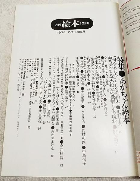 月刊絵本 1974年10月号 ●特集:あかちゃん絵本 ●わが家のあかちゃん絵本 大橋歩・舟崎克彦・いまきみち他