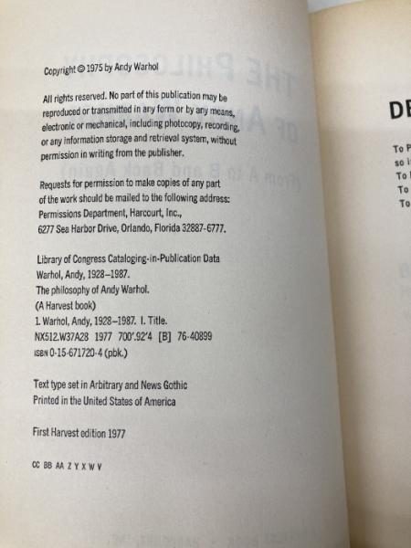The Philosophy of Andy Warhol (From A to B and Back Again) (Harbrace Paperbound Library ; Hpl 75) Harvest Warhol, Andy
