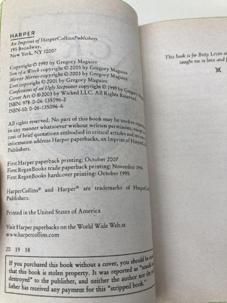 【※イタミ有】Wicked: The Life and Times of the Wicked Witch of the West (Wicked Years, 1) William Morrow Paperbacks Maguire, Gregory