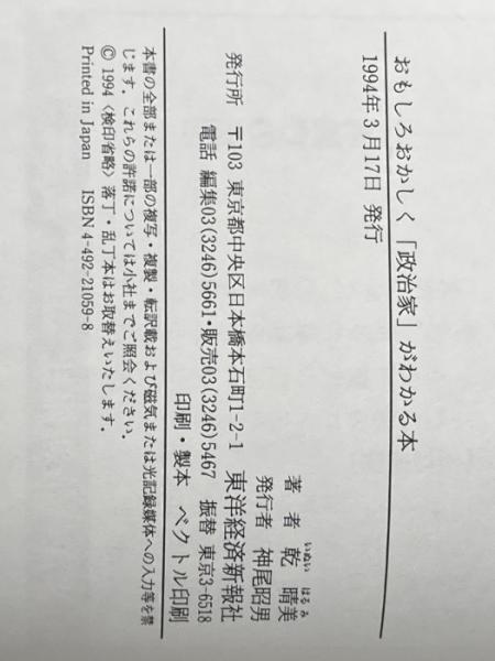 おもしろおかしく政治家がわかる本 東洋経済新報社 乾 晴美
