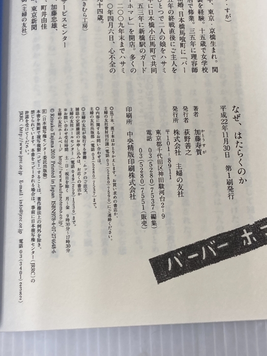 なぜ、はたらくのか―94歳・女性理容師の遺言 主婦の友社 加藤 寿賀