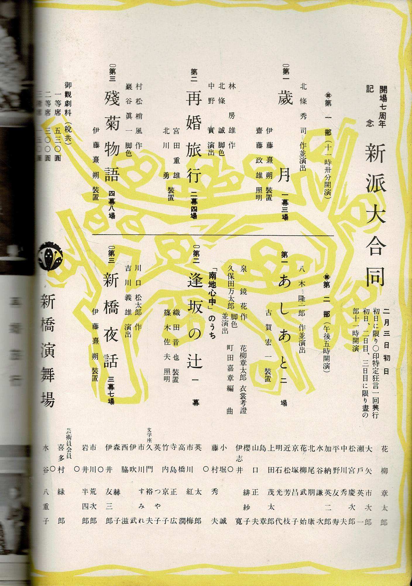 (演劇パンフレット)開場七周年記念 新派大合同 昭和29年2月(新橋演舞場)