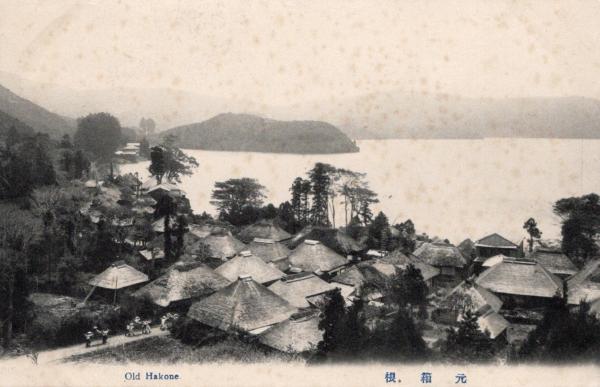 N26011604〇戦前絵葉書○神奈川 元箱根 茅葺屋根の集落 芦ノ湖 古写真○和本古書古文書