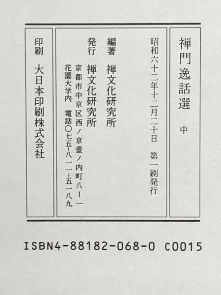 禅門逸話選 中 禅文化研究所 禅文化研究所