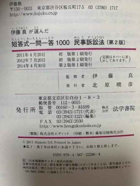 伊藤真が選んだ短答式一問一答1000民事訴訟法 法学書院 伊藤真