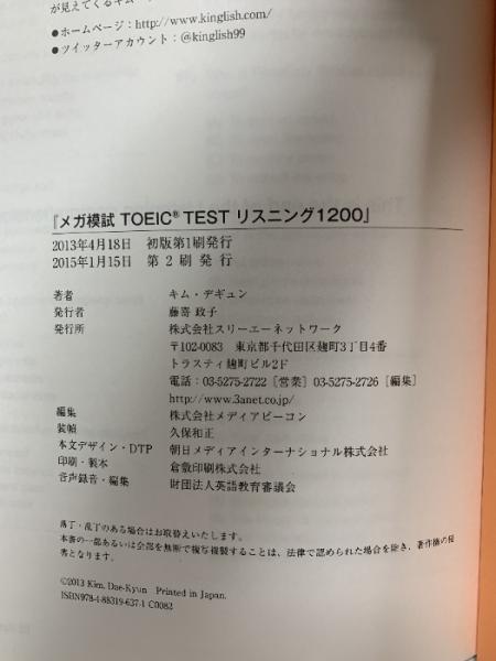 CD付 メガ模試TOEICTESTリスニング1200 スリーエーネットワーク キム・デギュン 著