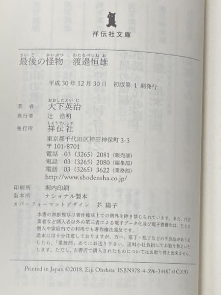 最後の怪物 渡邉恒雄 (祥伝社文庫) 祥伝社 大下英治