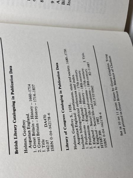 洋書 Augustan England  Professions, State and Society, 1680-1730 Harpercollins Geoffrey S.Holmes