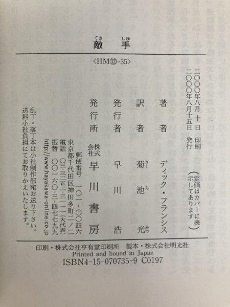 敵手 (ハヤカワ・ミステリ文庫 フ 1-35 競馬シリーズ) 早川書房 ディック フランシス