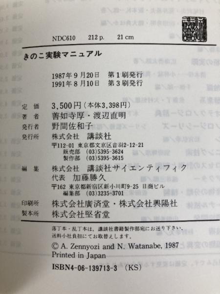 きのこ実験マニュアル 講談社 善如寺 厚