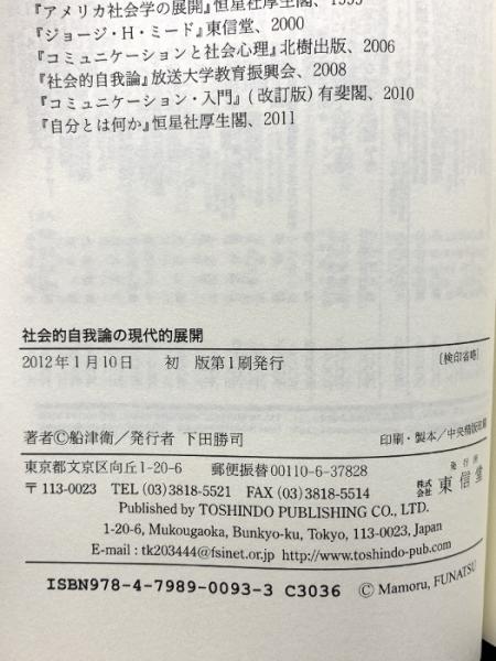 社会的自我論の現代的展開 東信堂 船津 衛